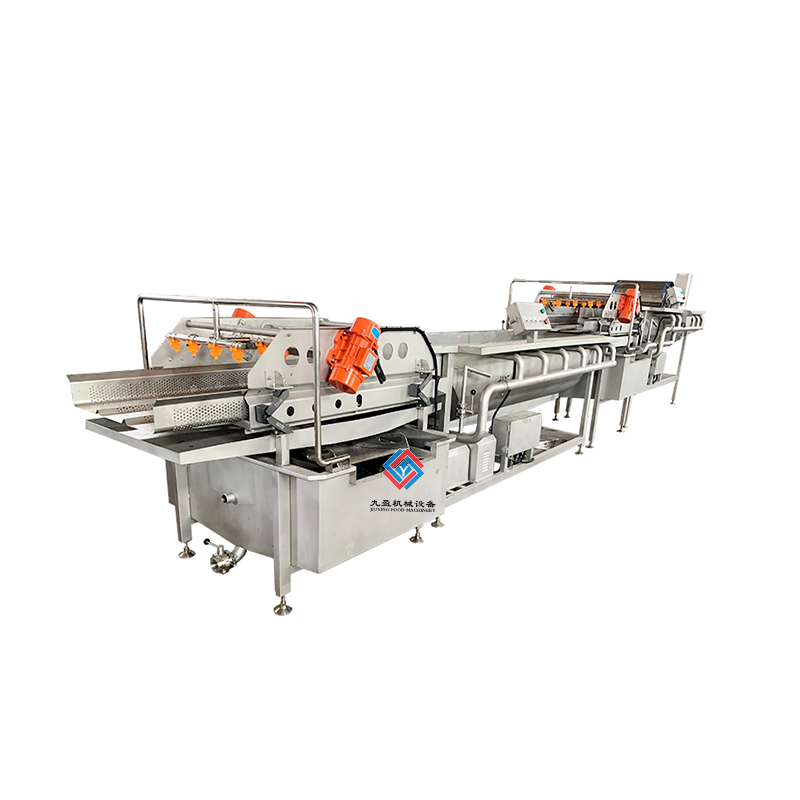 凈菜加工成套生產(chǎn)線是針對多種的蔬菜進行清洗和加工處理的,可以將蔬菜表面的泥土進行清洗干凈,還能夠?qū)κ卟诉M行農(nóng)殘?zhí)幚?,可以將蔬菜的農(nóng)藥進行分解,提升蔬菜的品質(zhì)程度,通過清洗之后的蔬菜輸送到震動篩進行麗水處理,能夠?qū)⑹卟松洗蟛糠值乃譃r干,之后輸送到風(fēng)干設(shè)備上可以將蔬菜的表面水分更加充分的蒸發(fā),之后再進行整理過后可以進行真空包裝處理,經(jīng)過真空包裝處理之后的蔬菜可以延長保鮮時間,建議填充質(zhì)量的氮氣可以使保鮮效果好。